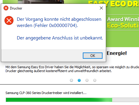 Ich habe mal die letzten beiden "größeren" Updates deinstalliert, allerdings brachte das keinen Erfolg. Wenn ich versuche, den Drucker mit einem der Treiberpakete von Samsung (gibt ja explizit für 360er Serie oder wahlweise den Universal-Driver 3.0), kommen solche Meldung. Es geht bei mir wohl um "die Anschlüsse" zu der Windows anscheinend keinen Draht (mehr) hat. Sagt das jemandem was bzw. kann man das heilen, ich hoffe!! :(