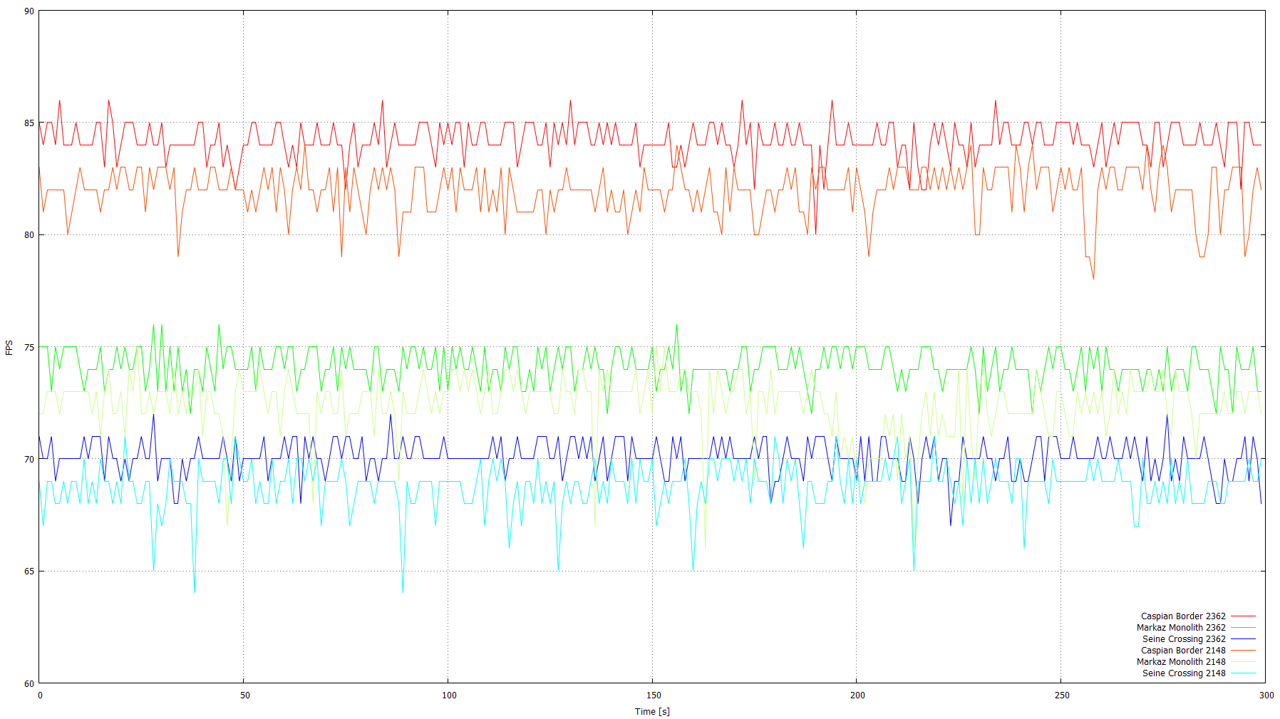 Bis jetzt dachte immer, dass es der Spaß eine Folge von der Auflösung 5760*1080 ist. Aber heute habe ich mal in 1920*1080 mit den üblichen verdächtigen RAM-Empfehlungen getestet. Ultra-Preset, Titan heruntergetaktet auf 732 MHz, 3770 auf 4.1 GHz mit HT off, damit meine Hardware auch eher zu den Einstellungen passt. Ähnliches Ergebnis.