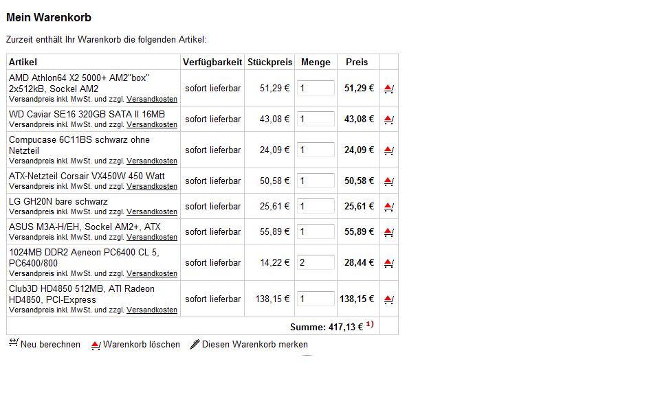 Also 400€ für Gehäuse, evtl. Lüfter, Netzteil, Mainboard, Grafikkarte, Prozessor, Arbeitsspeicher (4GB am besten).