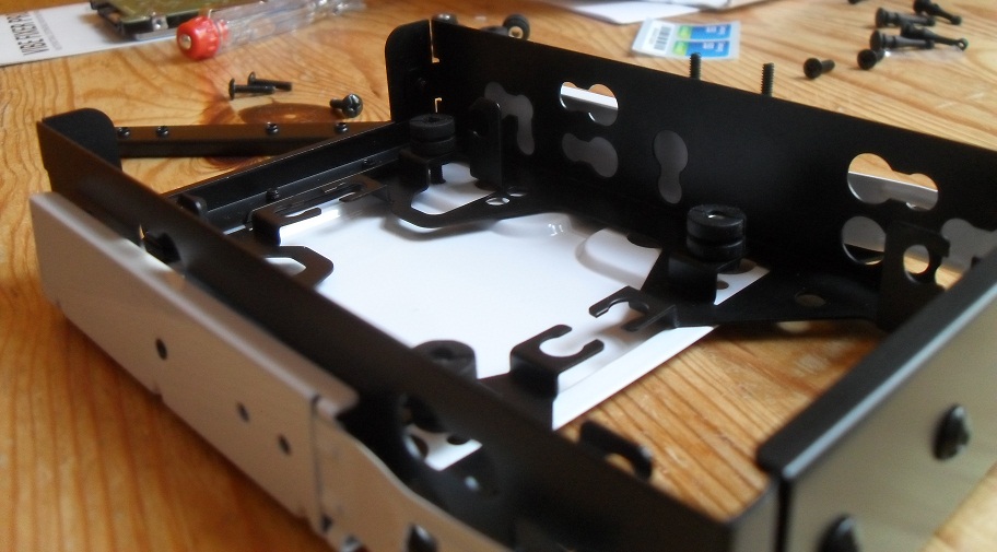 Wie sollte ich dann weitermachen? HDD einfach auf das nackte weiße Blech schrauben? Die Löcher passen mit der HDD überrein, aber sie sind so klein, dass ich dazwischen keine Gummiringe legen kann.