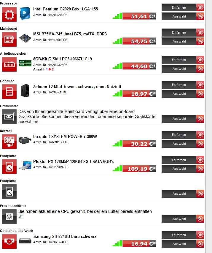Zwei Rechner habe ich lt. Recherche schonmal zusammengestellt. Dass sollte dann aber auch, nach Absegnung von Euch, das optimale sein (also preislich sollte es nicht höher gehen, bei dem 750k ... die zweite Zusammenstellung ist das preislich untere Ende) - vielleicht noch einen Möglichkeit mit 400 € .. das weiß ich jetzt aber nicht, wo ich Einsparungen machen sollte ...