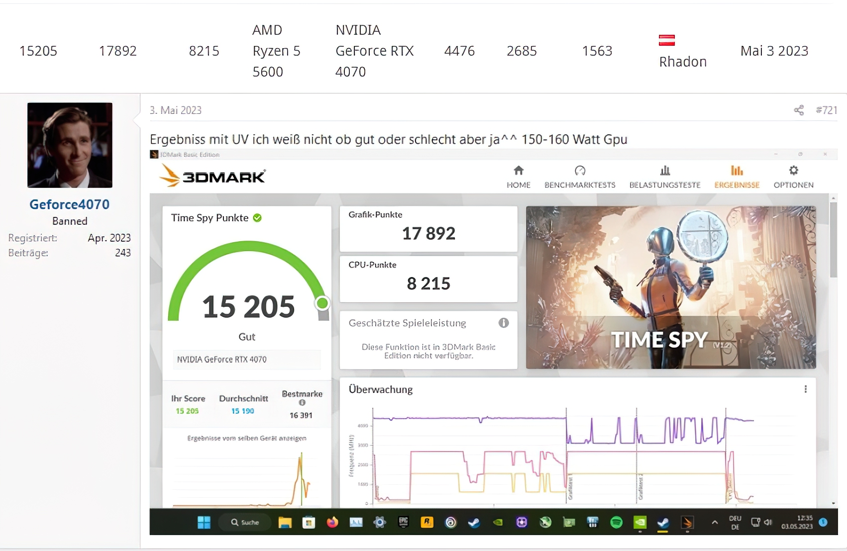 Ist die Redaktion sicher dass im Hintergrund nicht zusätzlich 3DMark lief?