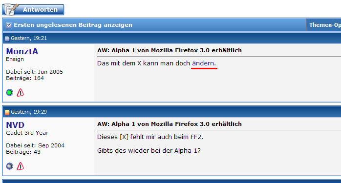 @HappyMutant: der Versionssprung von 1.0 auf 1.5 hat auf meinem Rechner Firefox nicht stabiler gemacht - im Gegenteil.