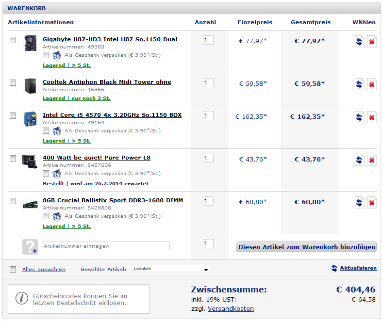 Hab mich ein wenig inspirieren lassen von der CT Ausgabe 11/2013 Ausgabe: Ihr Wunsch-PC