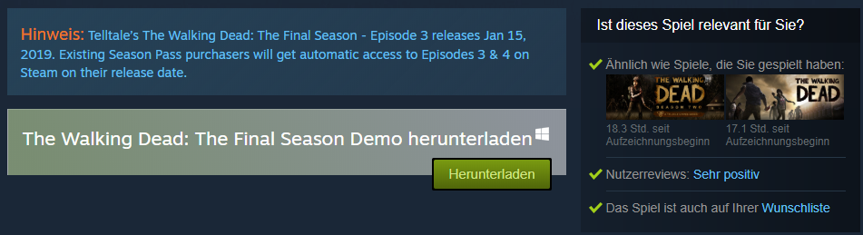 wieso kann ich nicht das Spiel herunterladen obwohl Teil 1 + 2 in meinem Besitz ist