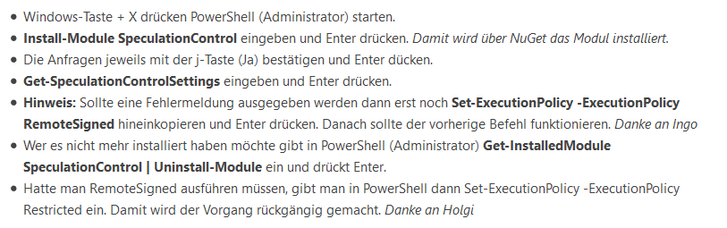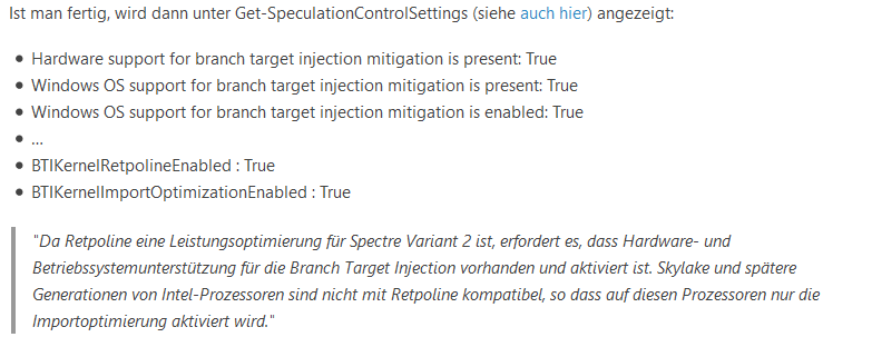 Nickel schrieb:Retpoline wird, je nach System, auch bei der 1809 seit dem letzten Patchday automatisch aktiviert,