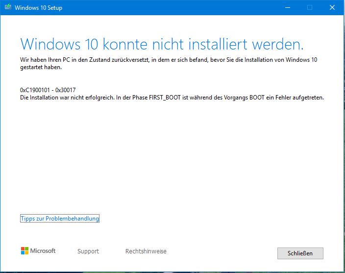 Nik916 schrieb:Die Installation brach kurz vorm Ende mit der Fehlermeldung auf dem Bild ab.