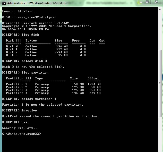 Nun wuerde ich gerne partition D: loeschen (die frueher als C: war).