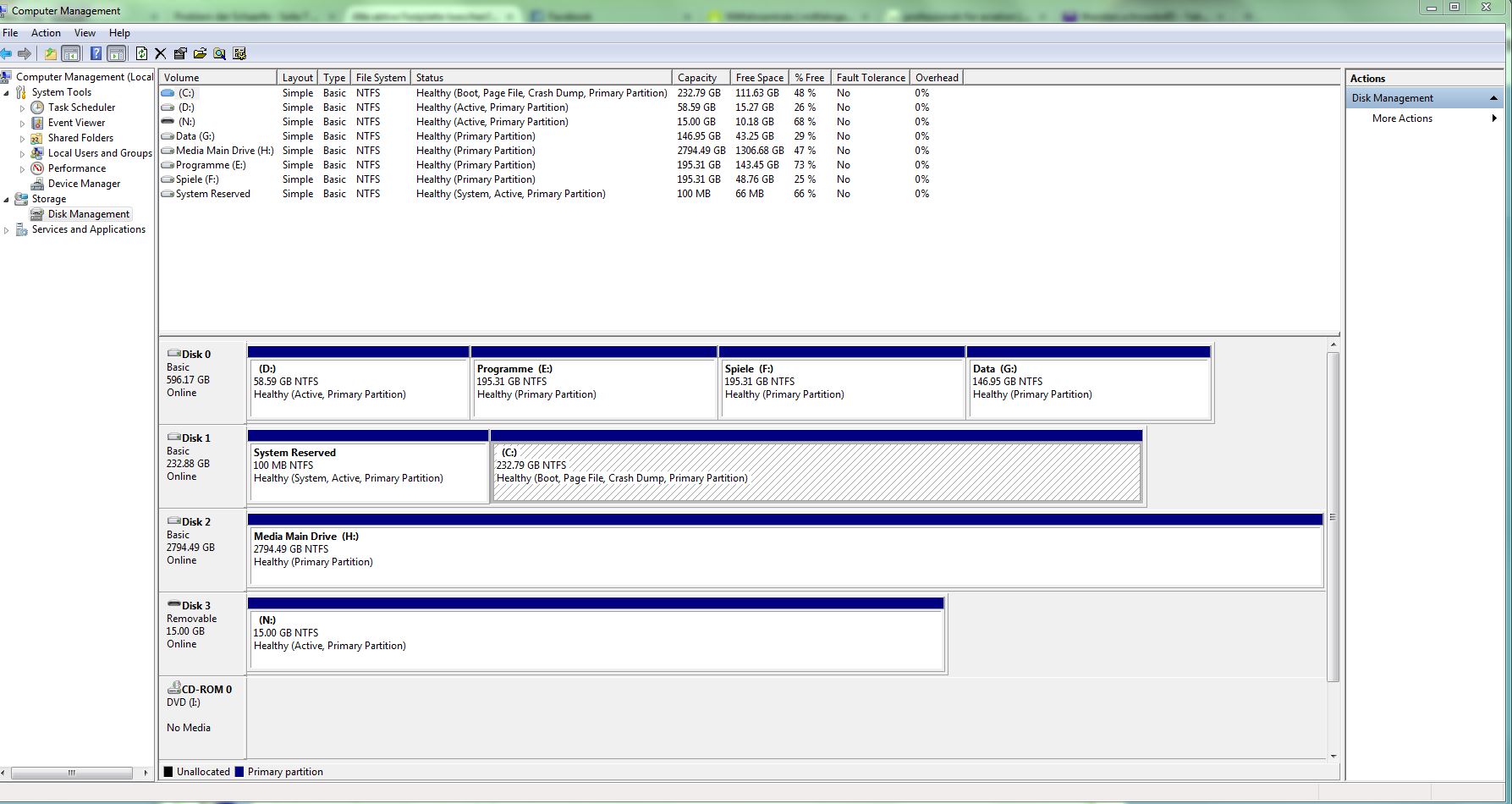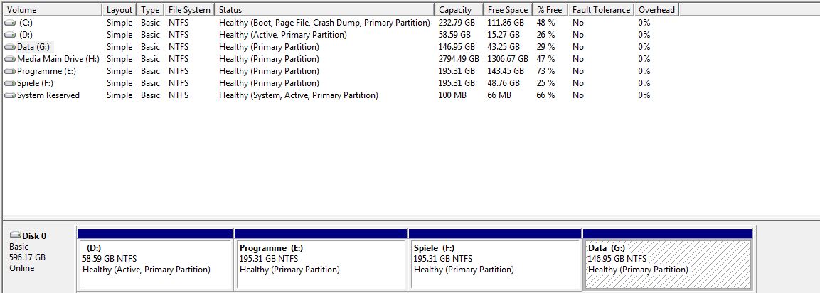 Ich bin auf disk management gegangen und wollte format klicken, da warnte er mich, dass dies eine aktive partition sei und wenn ich die loesche, befuerchte ich, dass alle 4 partitionen der alten HDD nicht mehr ansteuerbar sind.