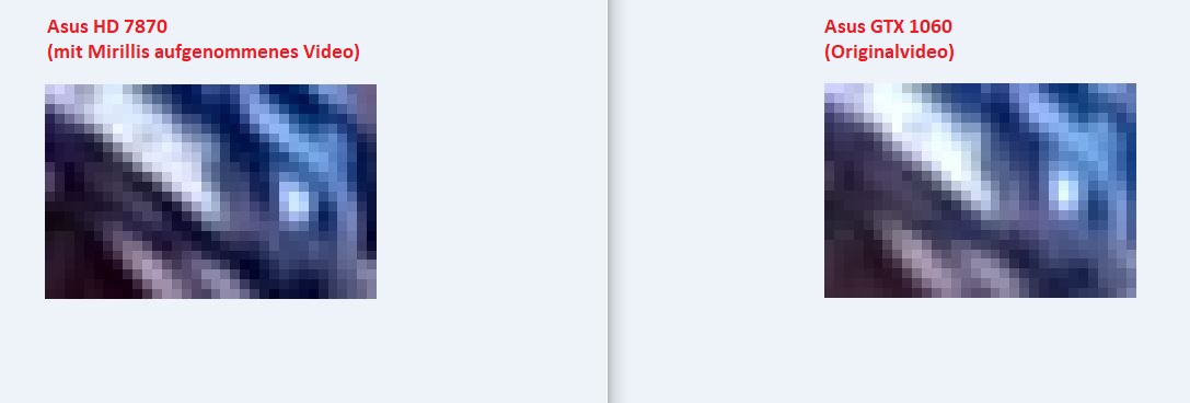 die Desktopaufnahmen mit Mirillis Action sind immer noch unschärfer und verwaschener, als die Aufnahme mit HD7870 (Und ja, es sind immer die genau gleichen Quellen, gleiche Auflösung, gleiche Einstellungen)