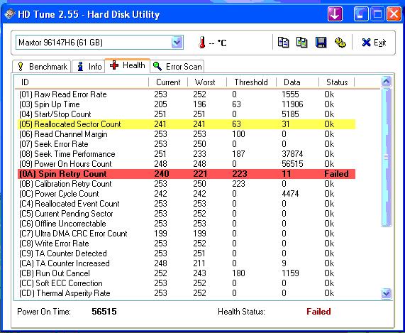 und in anderen programmen sind die smart werte auch ok, nur in hdtune steht "failed"