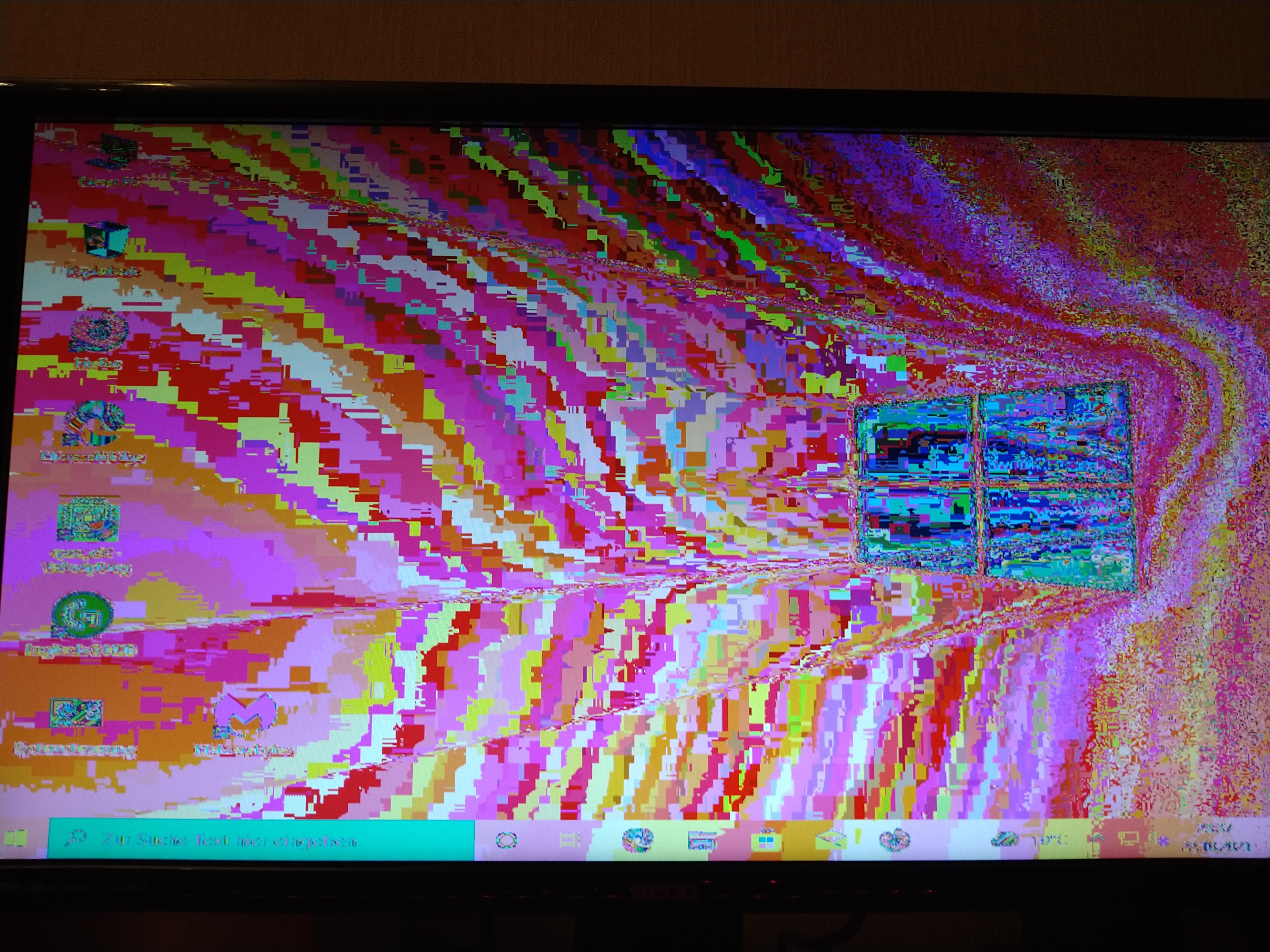 Habe jetzt die Grafikkarte in (minimal) anderer Position festgeschraubt, exakt der selbe Farbsalat.