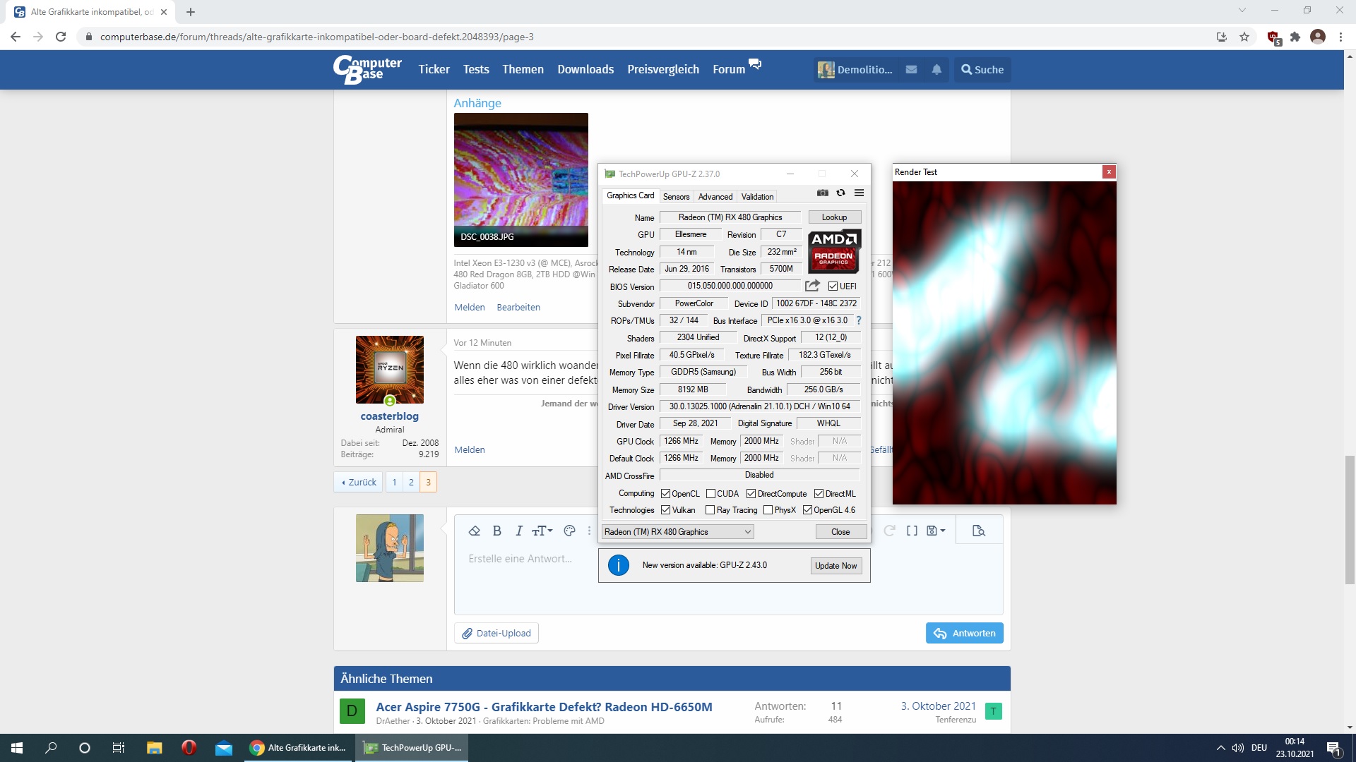 Soll ich versuchen bei den momentanen Preisen die RX480 zu verkaufen? Was mache ich wenn die außerhalb meines alten PC nicht funktioniert? Selbst wenn es gut Kohle dafür gäbe, muss ich 300€+ draufzahlen in der Hoffnung, dass diese Karte dann ordnungsgemäß funktioniert.