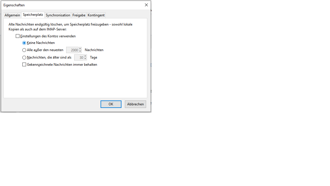 Älteste Mail ist Stand heute vom 30.1.19. Gesendete Mails bleiben erhalten. Finde im Ordnerbaum kein Archiv. Im Papierkorb sind nur die manuell gelöschten Mails.
