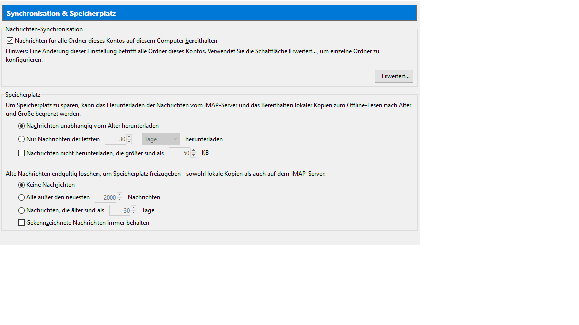 seit dem letzten Sommer nutze ich mein eMail-Account im IMAP-Protokoll, zuvor POP3. Zugriff erfolgt via Thunderbird in Standardeinstellungen und K9-Mail am Smartphone (Standardeinstellungen). Gelegentlich über den Webmailer.