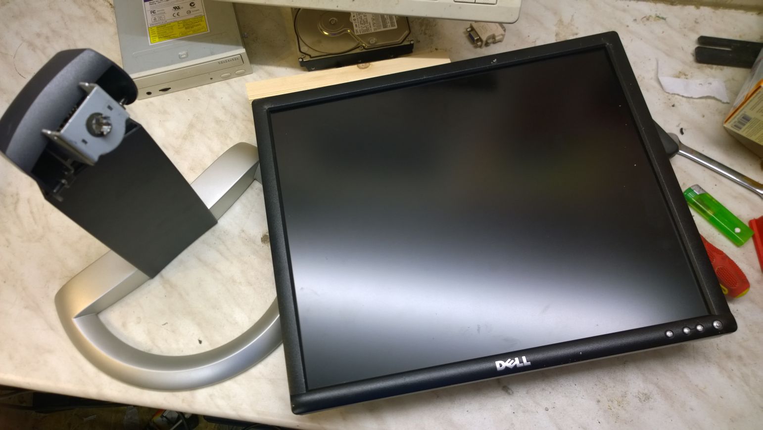 Monitore war einfach, bei einem Bekannten gefragt, der bei einem Verlagshaus arbeitet, der hat mir 4 ausgemusterte Monitore mitgebracht. Dell TFT Bj 2007. Ich glaube 19 Zoll.