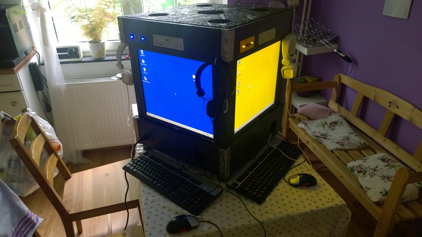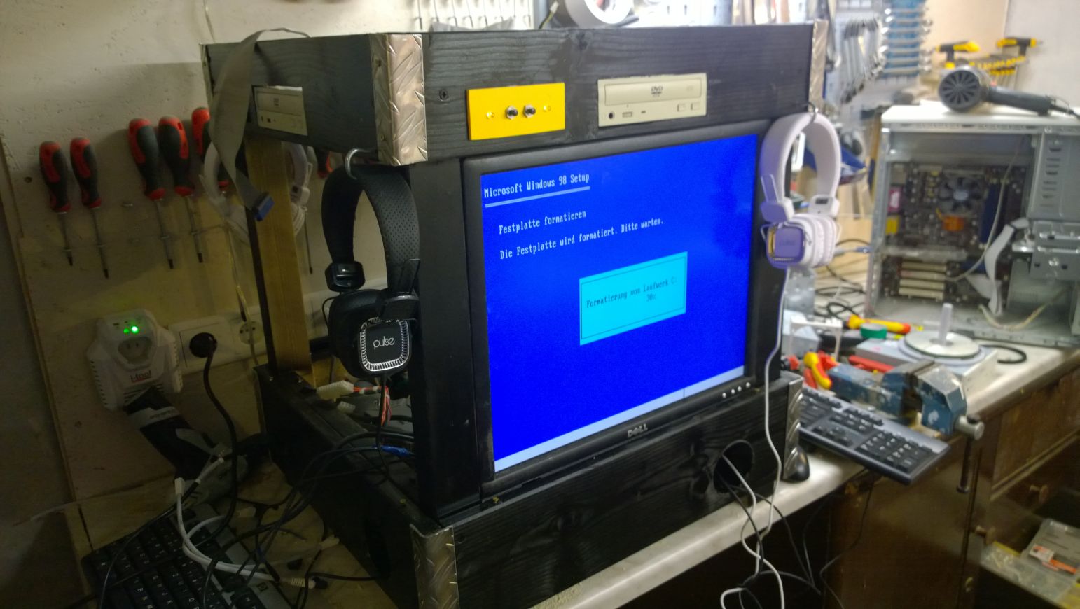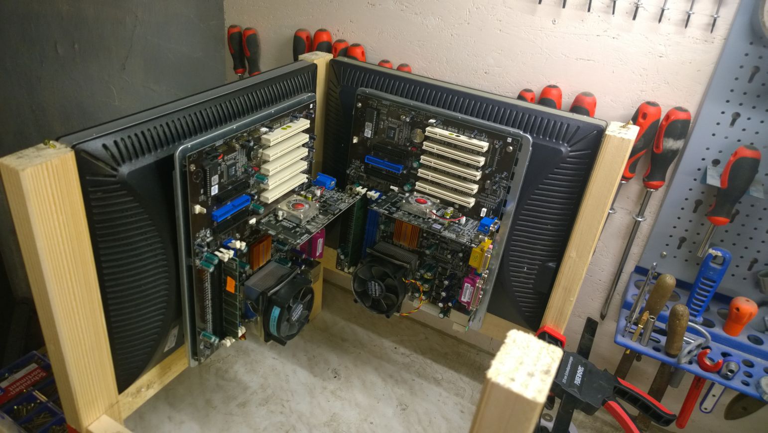 Alter Rechner müssen her, TFT-Monitore dazu(nicht ganz zeitgemäß, aber Röhre war mir zu sperrig)