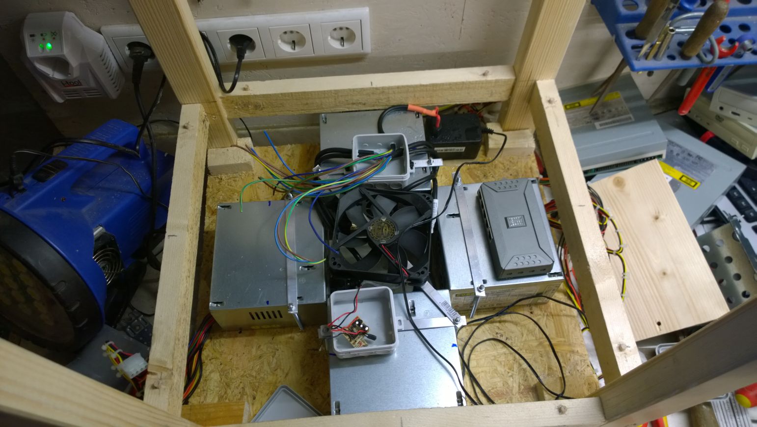 Unten müssen dann die Netzteile hinein, eigentlich auch die DVD Laufwerke und die HDD rein, passten aber nicht mehr, wurde zu eng - Kühlungsprobleme vorprogrammiert
