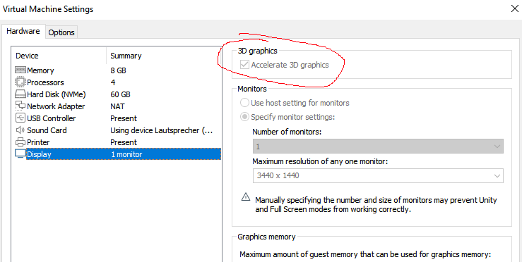Die Tools installieren, das sind zwei Klicks. Und die Bemerkung auch lesen. Du hast der GPU 8 GB zugewiesen. So wird das nichts. Für Deine Zwecke sollten es 512 MB sein. Oder wenn man überschwänglich wird, 1 GB.