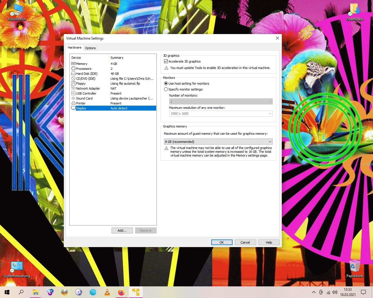 Dann probiere ich das mal mit VM Workstation.