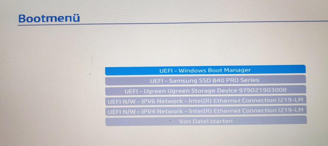 Nun dachte ich, dass das System dann einfach von der "alten" SSD bootet, was es jedoch nicht macht. Es kommt die Meldung BootDevice not found.