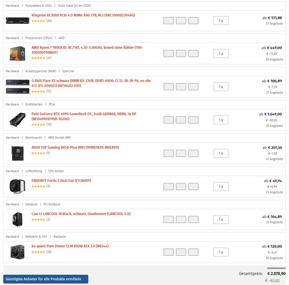 Ich möchte mir einen starken Gaming-PC laut Liste im Anhang zusammenbauen.