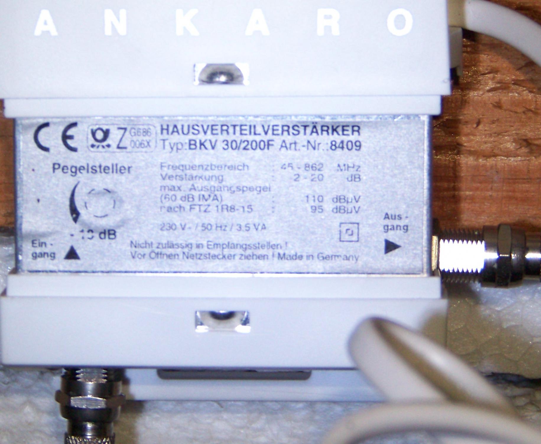 Von der Antenne selbst geht ein Kabel zum Verstärker (Bild mit den Daten angehängt), das Kabel am Verstärkerausgang ist dann nach ~15m abgeschnitten.