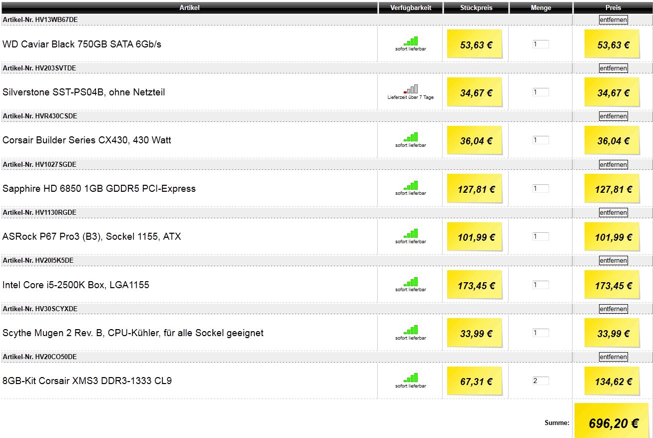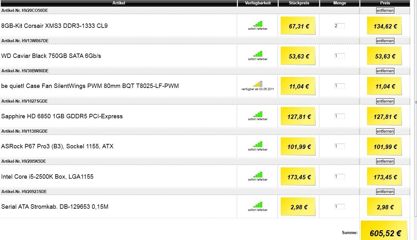 Ich wollte mir einen neuen PC kaufen so wie auf der Abbilung, allerdings wollte ich mein altes Gehäuse ohne irgendwelche Lüfter, meinen DVD Brenner, Festplatte und mein Netzteil Behalten, der PC sollte aber trotzdem leise sein.