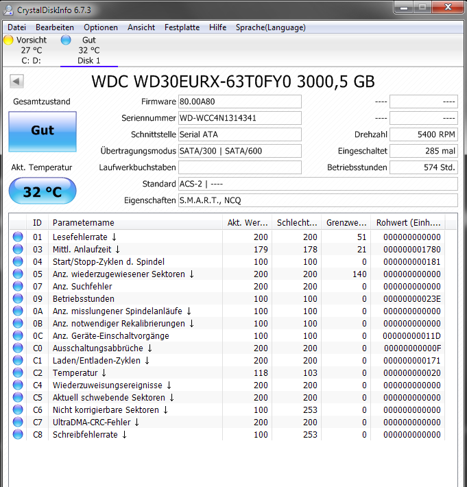 Jedenfalls habe ich die Daten von meinem NAS System (ca. 5,3 TB) vor ein paar Tagen auf den Reds im 6TB My Book abgelegt.