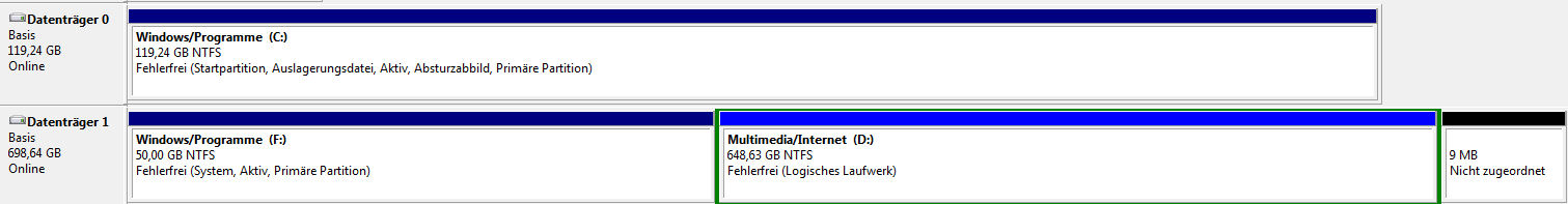 Ich habe mal ein Bild von der Datenträgerverwaltung angehängt
