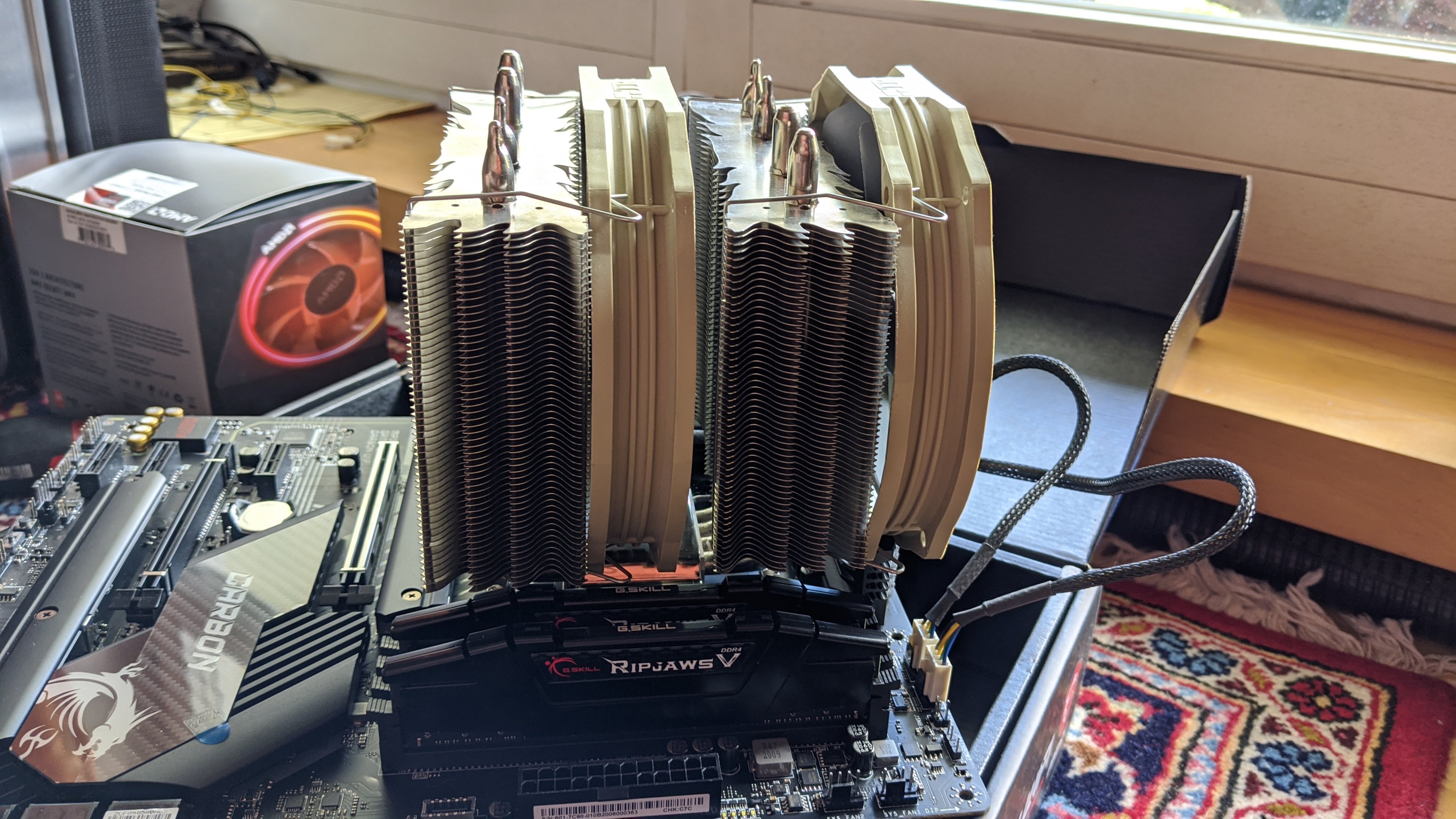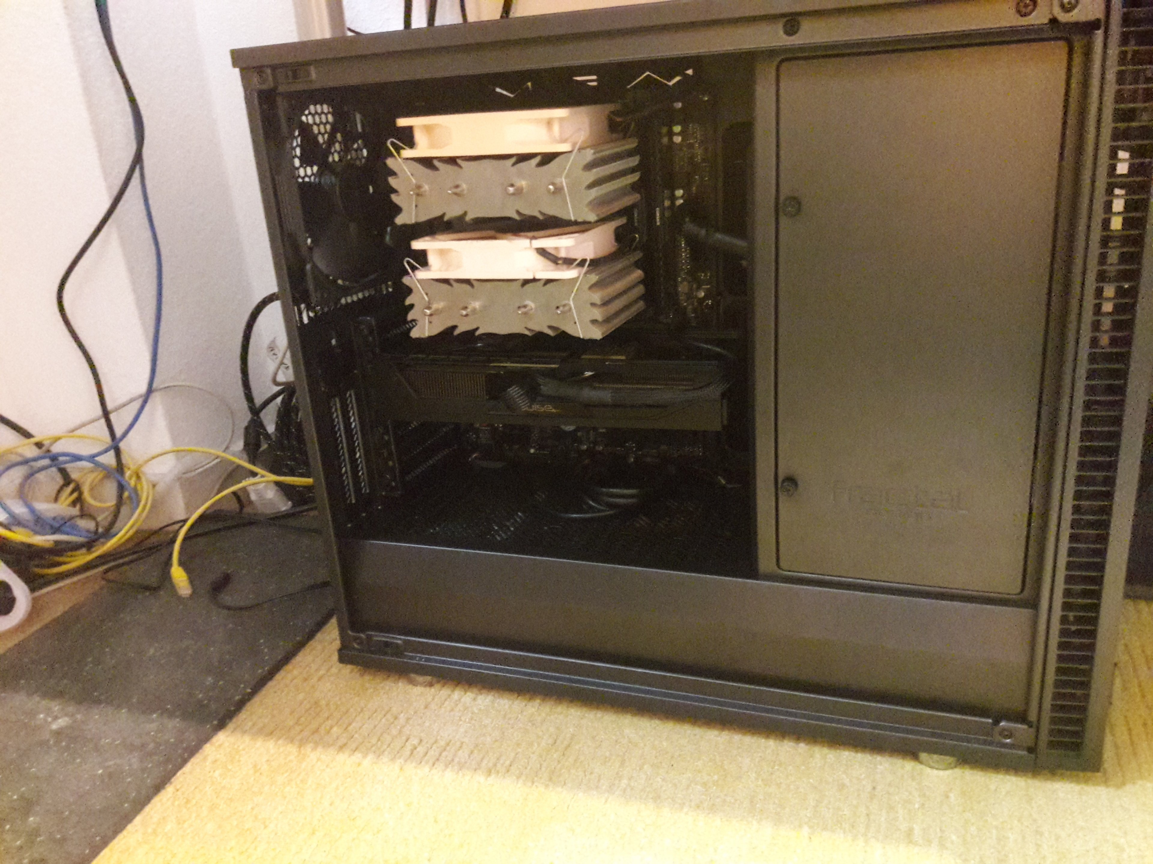 Ausgangslage: Aktuell verwende ich einen Thermalright IFX-14 (wer ihn nicht mehr kennt, weiter unten sind zwei Reviews verlinkt) auf dem inzwischen doch etwas altersschwachen Phenom II X4 940 mit zwei Noctua-Lüftern, deren Bezeichnung ich nicht mehr kenne. Diese Kombination habe ich ununterbrochen seit inzwischen zehn Jahren im Einsatz. Die TDP des X4 940 ist mit 125W angegeben. Auf stock liefe er mit 3GHz, bei mir von Anfang an (also seit 2009) mit 3,6 GHz, Spannung habe ich nicht im Kopf...