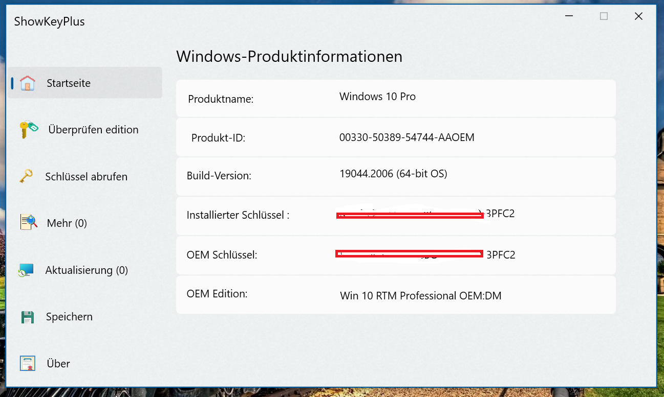 Wir gehen nun auf Key ändern-geben den offiziellen * teuren* ein und Windows ändert diesen um.