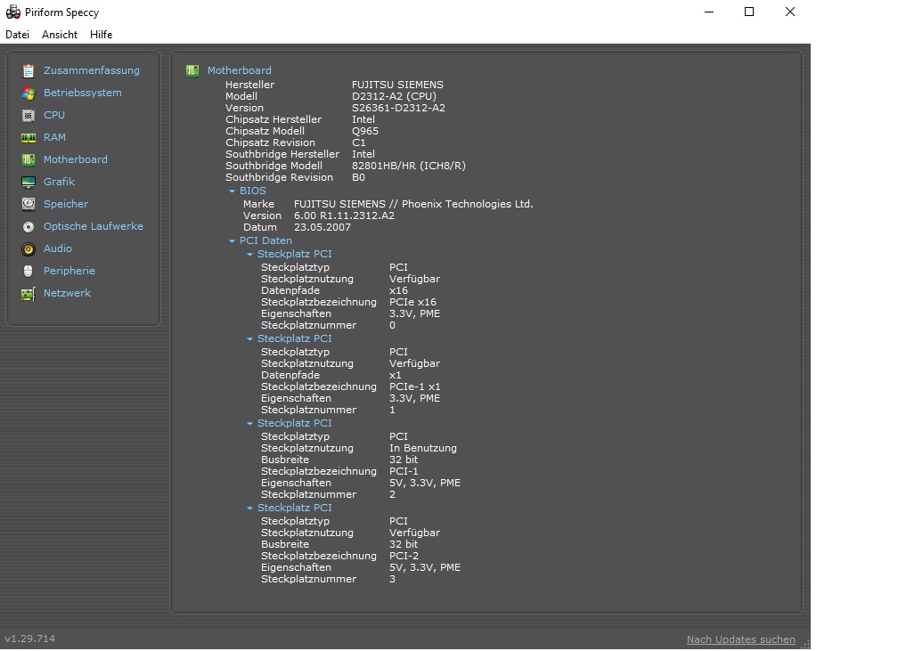 Ich möchte eine neue Grafikkarte, einen größeren RAM und eine neue Festplatte, auf der sowohl das System neu installiert wird, als auch Daten und Dokumente abgespeichert werden. Ich hab bisschen im Netz gesucht, ob ich irgendwelche Specs zu dem Mainboard finde, wie viel RAM, welche Platte usw es verträgt.