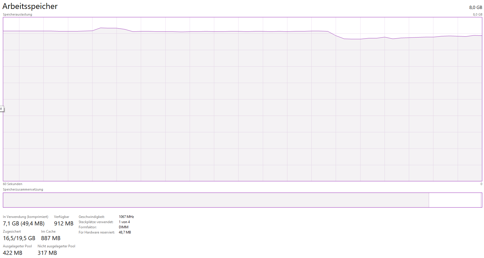 - RAM: 8 GB DDR4 (vermutlich 2400–3200 MHz, Single-/Dual-Channel unbekannt)