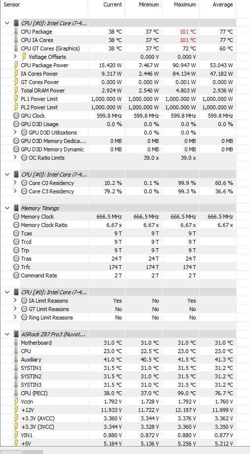habe nach Erneuerung der Wärmeleitkruste... nun alle Fans auf Maximum gestellt und dann so gut ich kann die Werte ausgelesen.