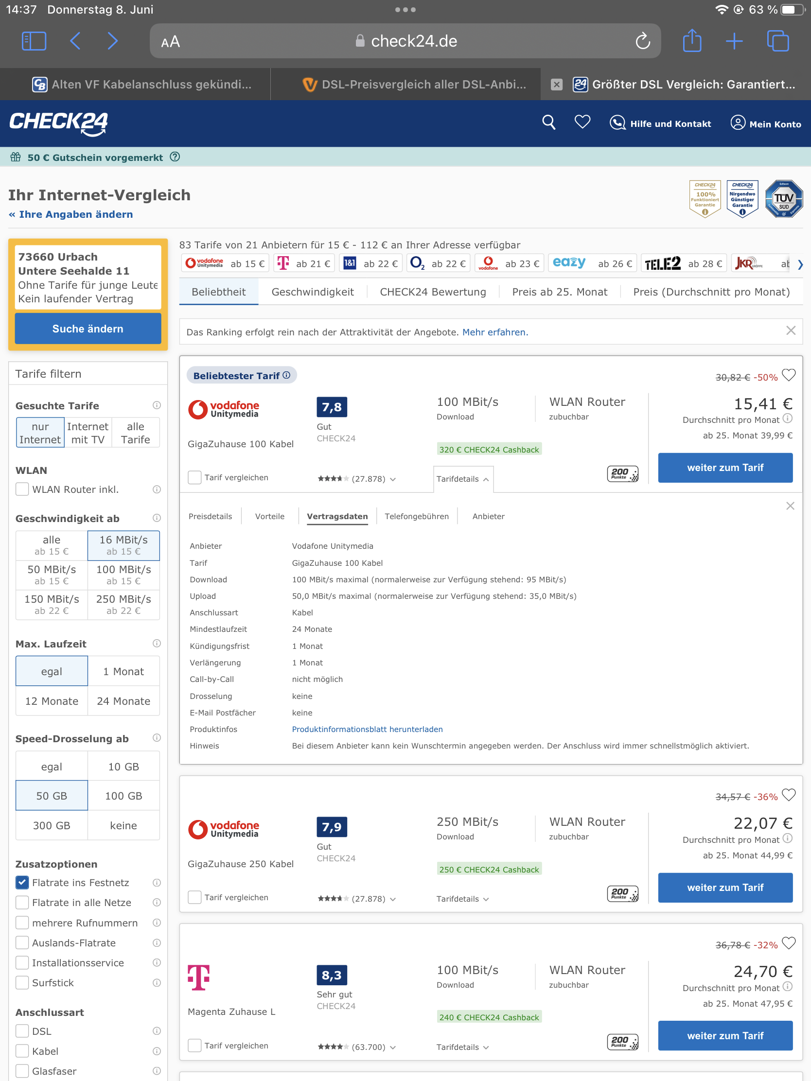 Könnte jetzt theoretisch meine Frau an der gleichen Adresse eine (Neu)Anschluss buchen und die Rufnummer irgendwie mitnehmen? Würde man dann auch von den Angeboten wie sie bei Check 24 zu finden sind profitieren können (Siehe Screenshot)?