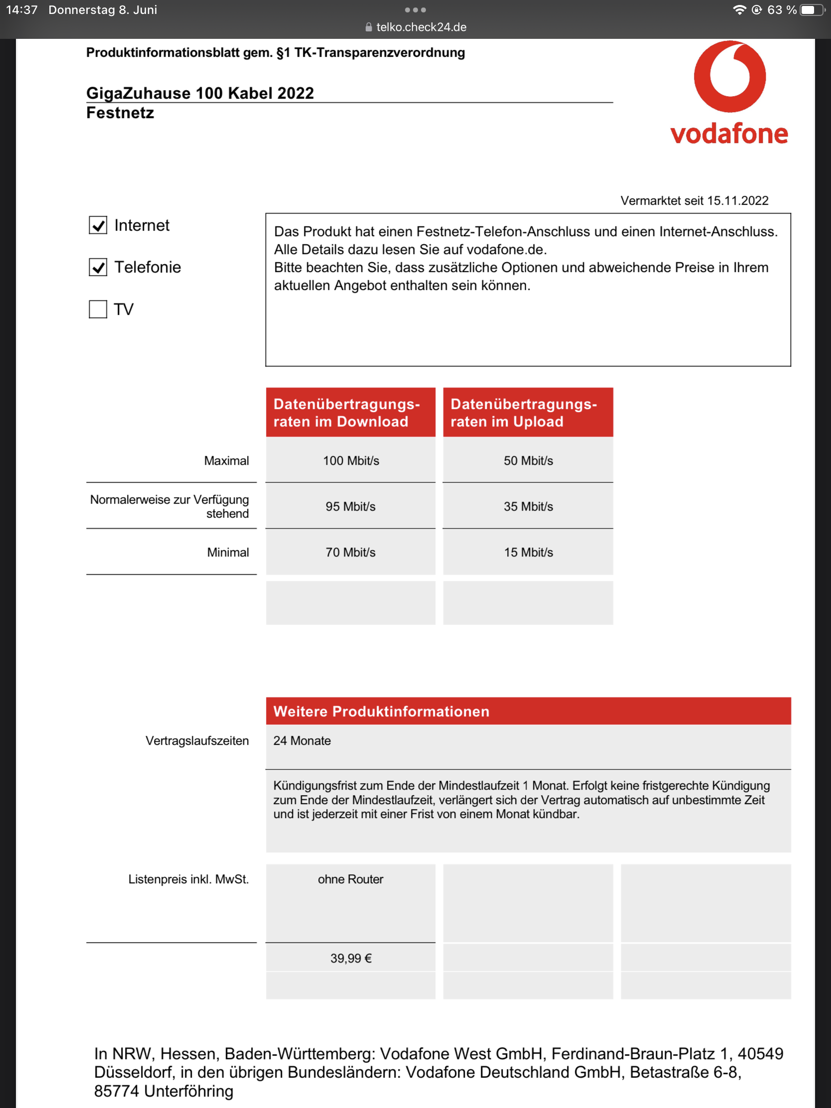 Wie viele andere auch, sind wir als Bestandskunden bei Vodafone von deren Preisanpassung betroffen.