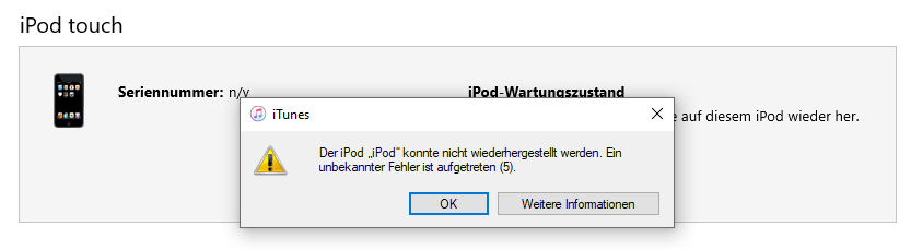 -> iTunes konnte keine Verbindung zum iPod touch herstellen, da eine ungültige Antwort vom Gerät erhalten wurde.