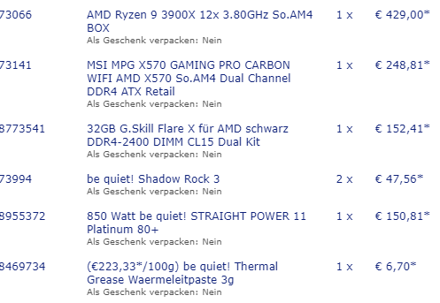 - Netzteil: Nein (500W sind zu wenig)