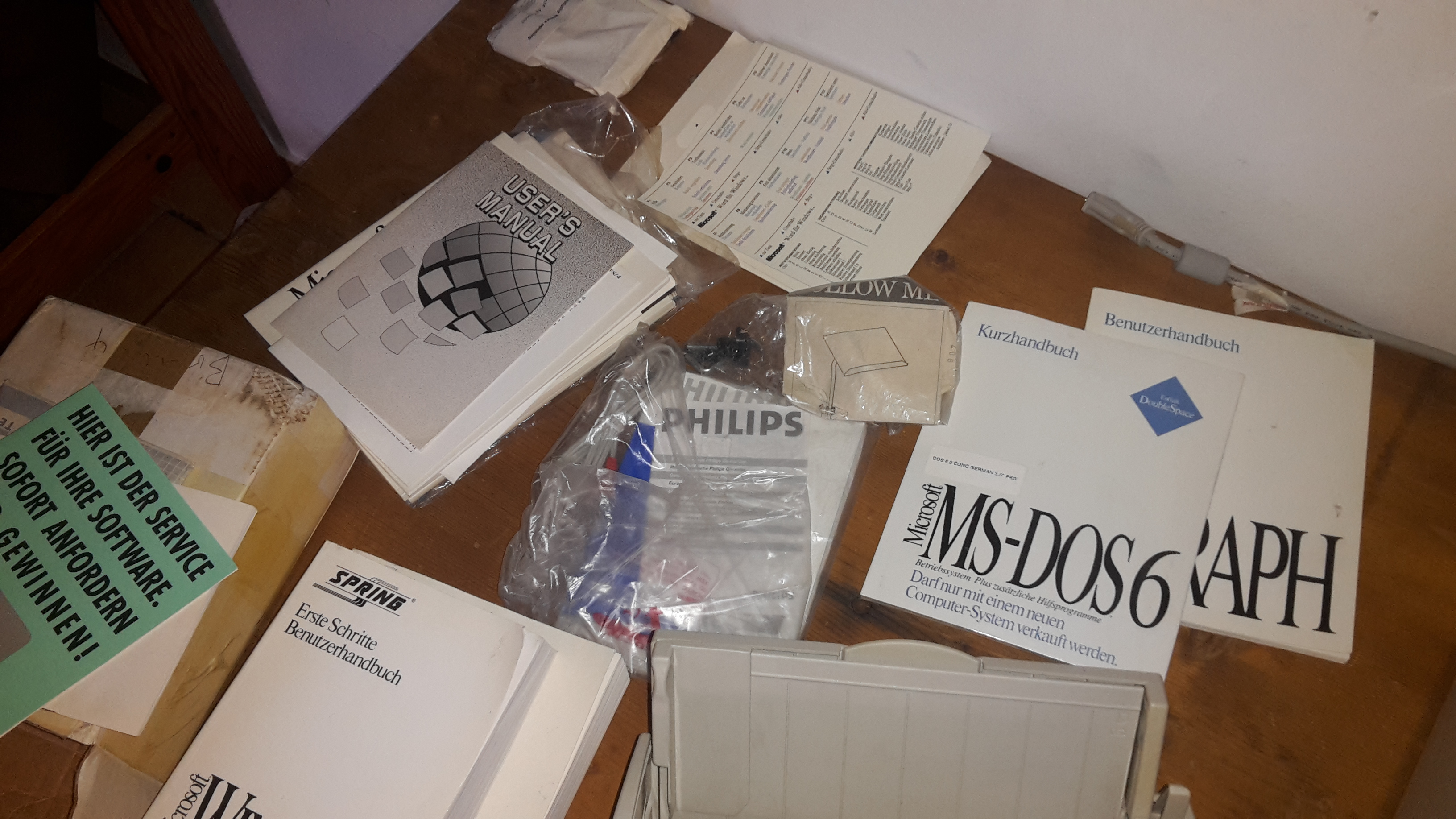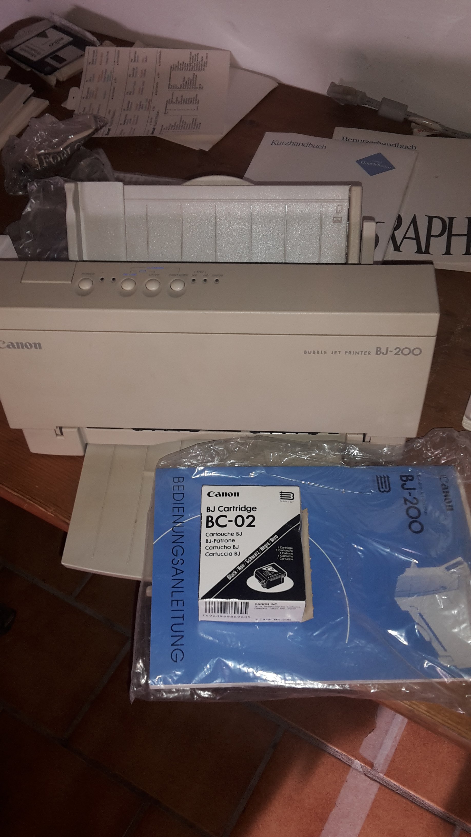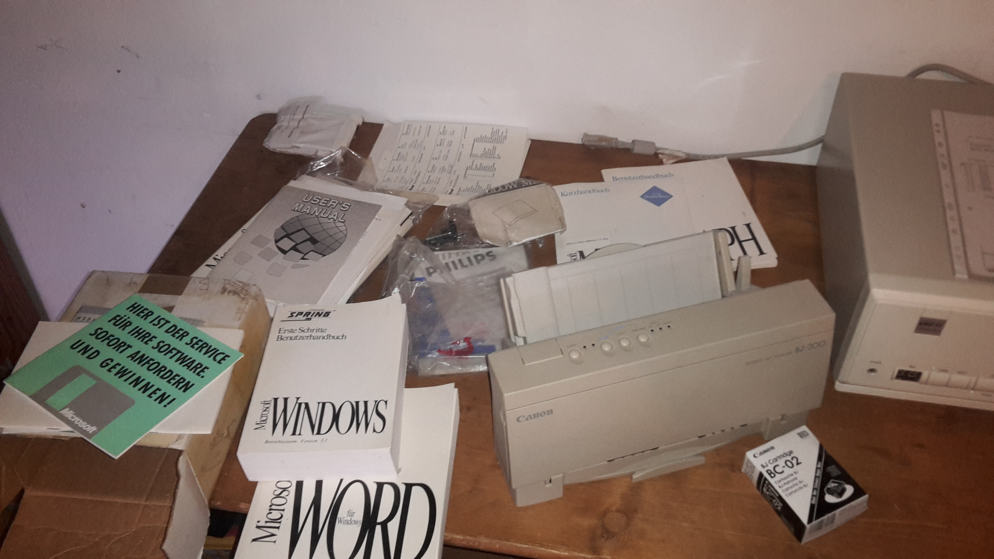 Neben den Orignalkartons des Druckers und des Bildschirms, waren auch sämtliche Originaldisketten, Benutzerhandbücher (Teilweise noch eingeschweißt), eine Druckerpatrone und Kabel vorhanden.