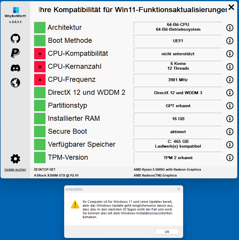 Nebenbei: Egal ob man den 3000G auch als nicht freigebene Hardware noch zum Laufen bringen würde, so ist der Wechsel auf einen 5500GT oder 5600G (bzw. auch einem 4300G oder sonstige 4000G-Varianten) halt alleine durch die Anzahl der Kerne schon ein großer Sprung, der im Alltag Freude machen wird. Also wenn das Geld "übrig" ist und die Ausgabe keinerlei Problem darstellt, ist das ein Schritt der sich eh auszahlt.