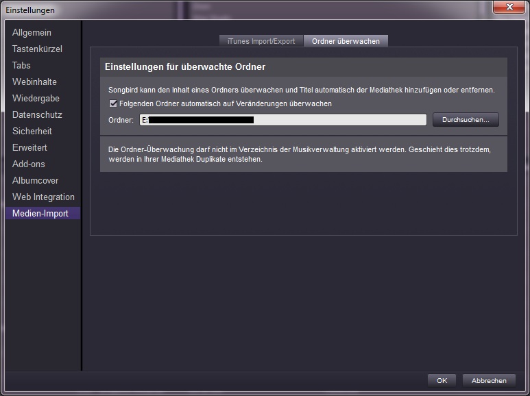 Wie bei iTunes würde ich gerne selbst bestimmen, wo die Musikdateien liegen. Kann man das? Und wenn ja, fügt Songbird neue Dateien dort ein, wie iTunes?
