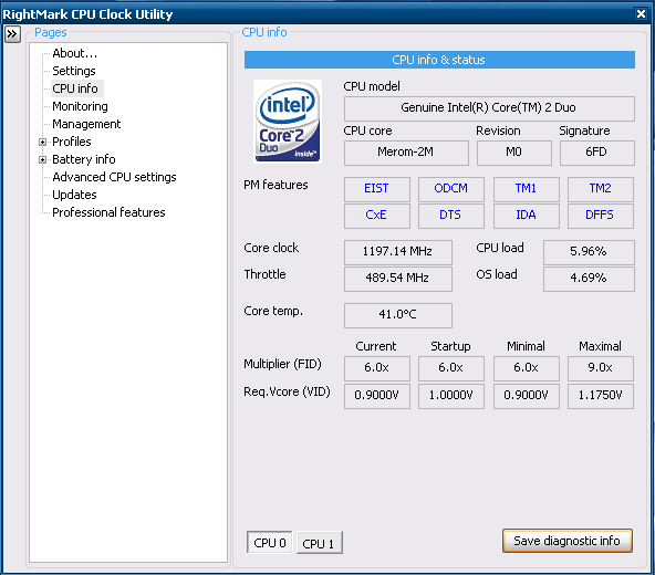 CPU #1 Intel(R) Core(TM)2 Duo CPU T8100 @ 2.10GHz, 2094 MHz