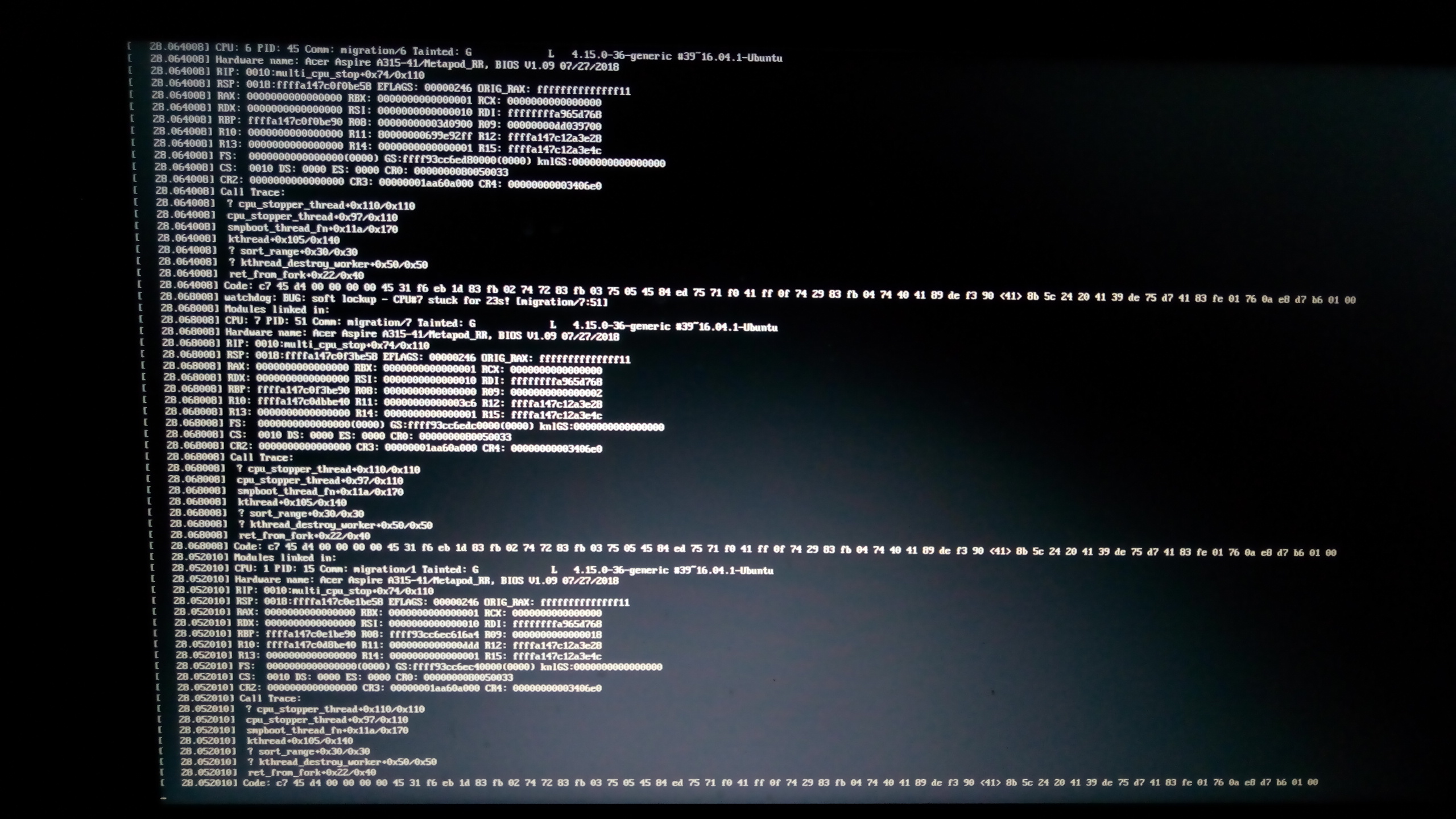 idle=nomwaitDiesen Fehler habe ich behoben, durch Deaktivierung von SecurityBoot im BIOS.root@linux schrieb:ubuntu 18.04 gebootet mit Flgs