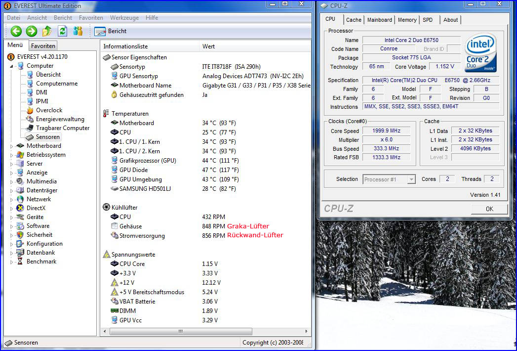 Das eine Foto zeigt einen Screen der Temps mit Everest. Temps beim normalen Surfen im I-Net waren das.