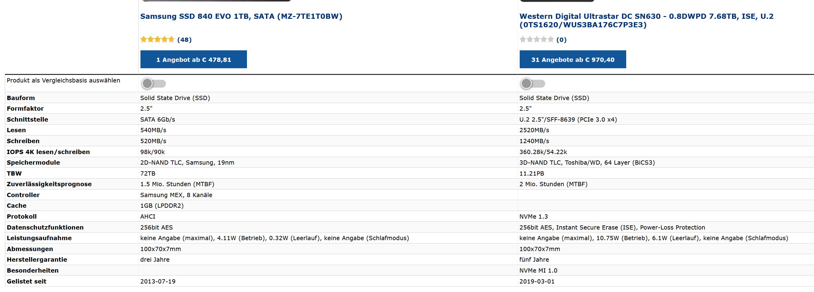Rein gar nichts. Aber 3x 2TB NVMe SSDs kosten weniger als 800€, eine NVMe SSD >=6TB mehr als 1600€. Ich hab ja auch gesagt, daß mir das egal ist ob RAID oder JBOD oder whatever, Hauptsache ich kann eine der Partitionen über 3 LWe ziehen, und ca. 500-600GB für mehrere BSe reservieren. Und genau da dabei habe ich keinerlei Erfahrungswerte, mir geht es aber rein um die Speichermenge.