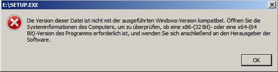 Jedoch kommt immer folgende Meldung wenn ich die Setup.exe von der CD ausführe: