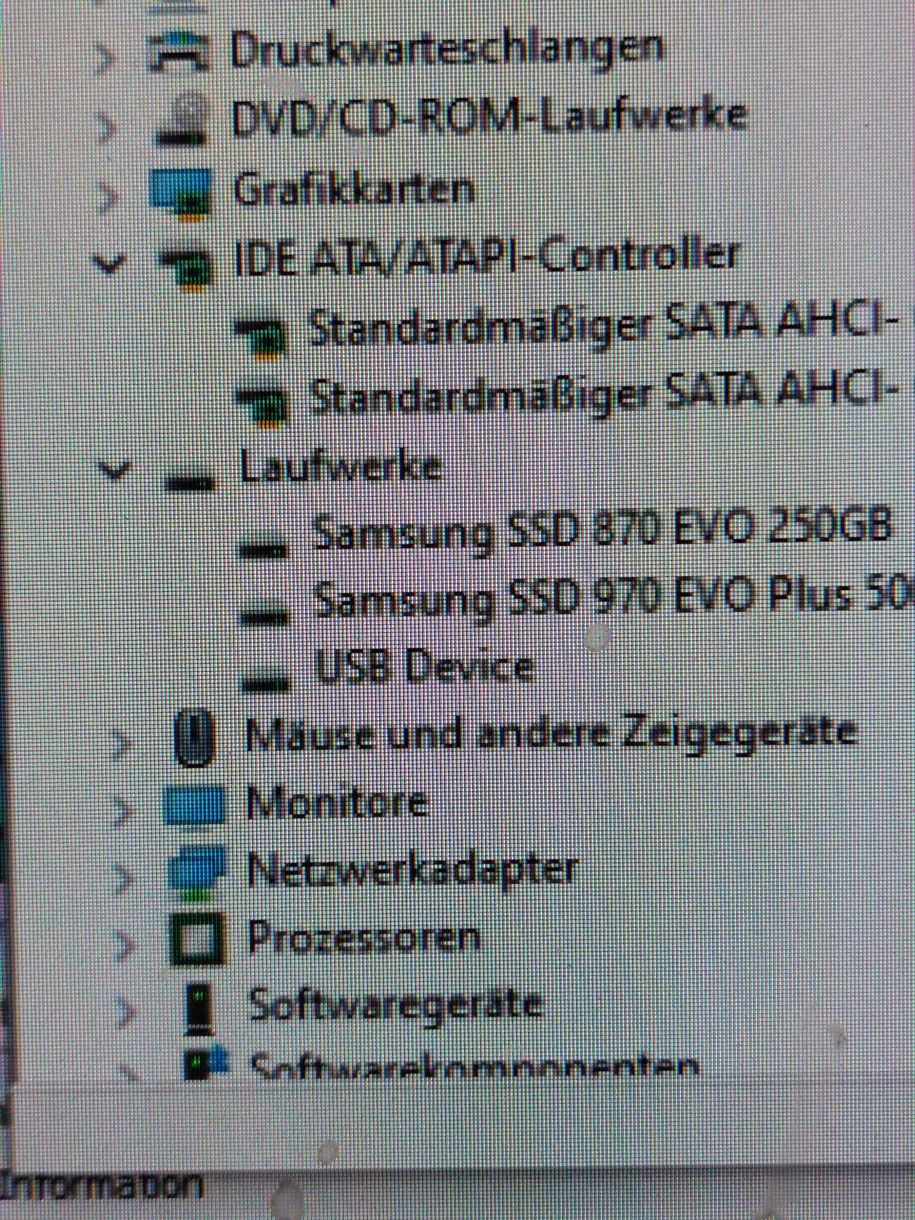 Zuerst die HDD angeschlossen, im Windows Explorer war sie mal nicht sichtbar. Somit den Gerätemanager geöffnet, dort wurde sie als "USB-Device" angezeigt, immerhin.