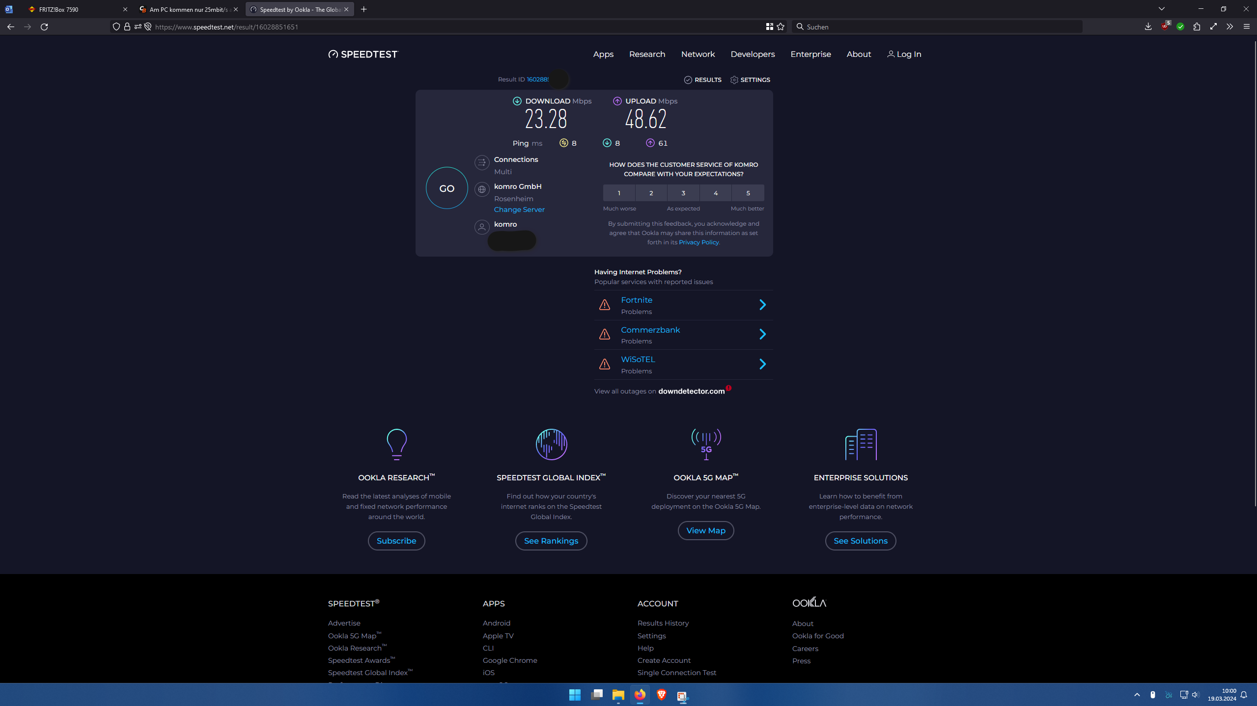 An den unterschiedlichsten Endgeräten mit verschiedener Hardware, Software und Verbindungen kommen bei verschiedenen Speedtests nur um die 25mbit/s an.