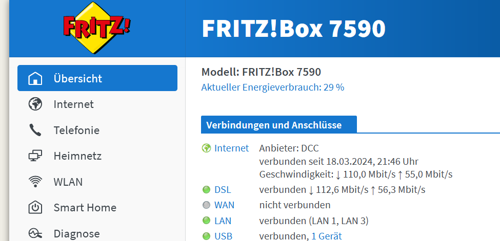 Die FritzBox zeigt aber die vollen 100mbit/s an.